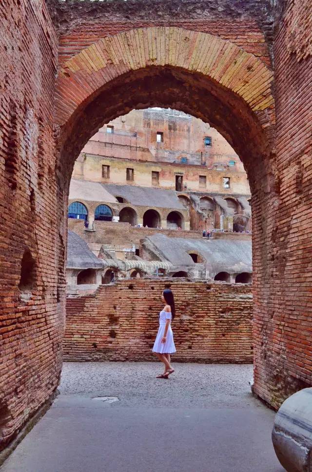 下面这张也是斗兽场。在斗兽场二楼有很多个类似这样的拱门连接斗兽场的内圈和外圈,游客一般都聚集在内圈和外圈上拍照,所以拱门就空了下来。