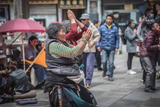 八廓街的中心便是大昭寺。寺庙最初的名字“惹萨”后来演变成“拉萨”,成为这座城市的名字。所以人们常说“先有大昭寺,后有拉萨城”。大昭寺最大的看头是当年文成公主入蕃时带来的释迦摩尼十二岁等身开光佛像。拉萨之所以被称为“圣地”,就与这座佛像有关。三楼的平台是遥望布达拉宫、俯瞰大昭寺广场好地方。大昭寺的另一道风景便是磕长头的藏民信众,看到的人都会为信仰的力量所动容。