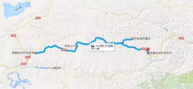 首先安排东线,是因为林芝一带普遍海拔较低,氧气相对富足,对于刚进藏的人来说,比较容易适应。林芝市(注意:从2015年开始林芝地区改为林芝市)距离拉萨410公里,有将近200公里的高速公路,其余为国道,车程大约8小时,一路要经过川藏公路最高点米拉山口和红教神湖巴松措。这两个景点在去林芝的路上游览参观。