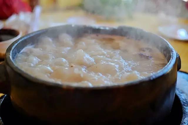 石锅鸡以当地特产手掌参和土鸡为原料,经石锅慢火炖制,风味非常独特,汤味有一股淡淡的药材清香,鸡肉嫩而有弹性。
