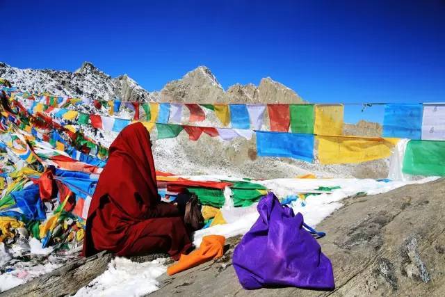 就是位于川藏线318国道上米拉山的山口,海拔5013米,山口处常年积雪。这是拉萨到林芝旅游线上的一个休憩之地,也有祈福帮你挂经幡的当地人,蓝天白云配上五彩的经幡总是有一种神圣跟纯净的感觉。经川藏线进藏的骑行或自驾旅行者都会到米拉山口的石碑前进行合影留念,因为米拉山口是川藏线上最后一个也是海拔最高的一座山。