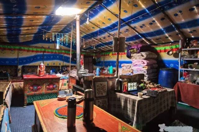一个帐篷里睡七八个人,床位分布在四周,中间生火炉,可以烧水、取暖。晚餐一般是方便面。夜里可以拍摄珠峰的星空和星轨。第二天早上可以拍摄珠峰的日出。