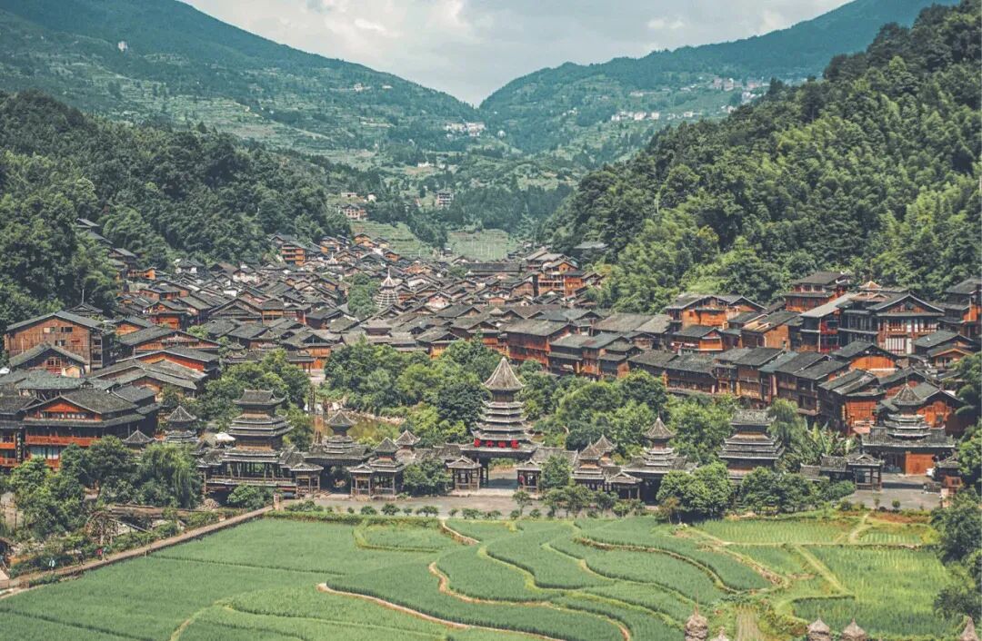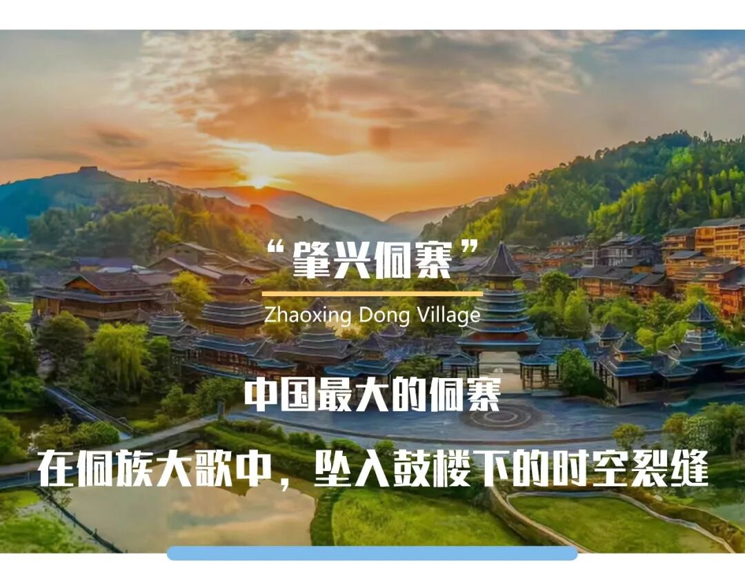 肇兴侗寨,位于贵州黔东南州黎平县东南部。占地18万平方米,居民1100余户,6000多人。是全国最大的侗族村寨,也是侗族的民俗文化中心,素有“侗乡第一寨"之美誉。肇兴不仅是鼓楼之乡,而且是歌舞之乡,寨上有侗歌队、侗戏班。