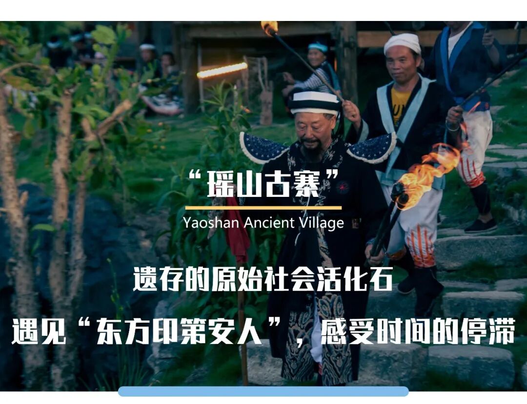 午餐后我们来到【瑶山古寨】位于美丽的世界自然遗产地--荔波,有些地方仍保留着“刀耕火种”的原始耕作方式和原始粗犷的民族遗风,被誉为“原始社会遗存的活化石”,而白裤瑶也被人类学家称为“东方印第安人”昔日因贫瘠而闻名的瑶山,避居蛮荒之地的瑶族,承关怀而巨变,经历了4次迁徙终于形成了一个古老民族文化与现代文明交相辉映的白裤瑶聚居村落。