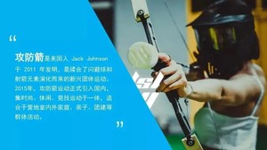 在冷兵器时代,弓箭是勇敢者的图腾,伴随着一个又一个铁血英雄征战沙场!而现在它是一款风靡美国的射击运动,是射箭与野战运动的混合版,包含WAR GAME的紧张和闪避球的刺激。