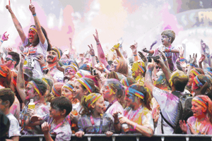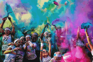 彩虹跑也叫彩色跑(The Color Run),是一项被称为“地球上最快乐的5公里赛跑”,参加者身着白色T恤,跑步过程中经过不同的彩色站,会被从头到脚抛撒彩色粉末。据悉,彩色粉末由纯天然玉米粉制成,对人体和环境无害。