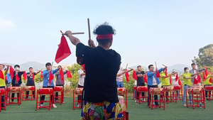 在个人练习水平稳定后,集合成方阵,完成组内的合作击鼓。