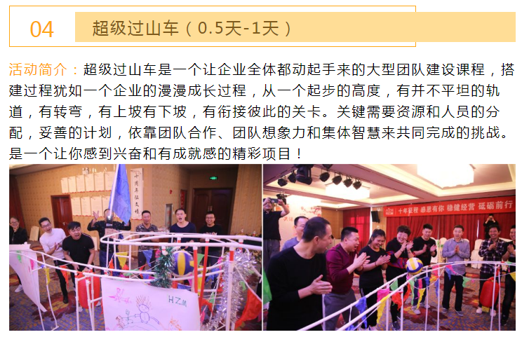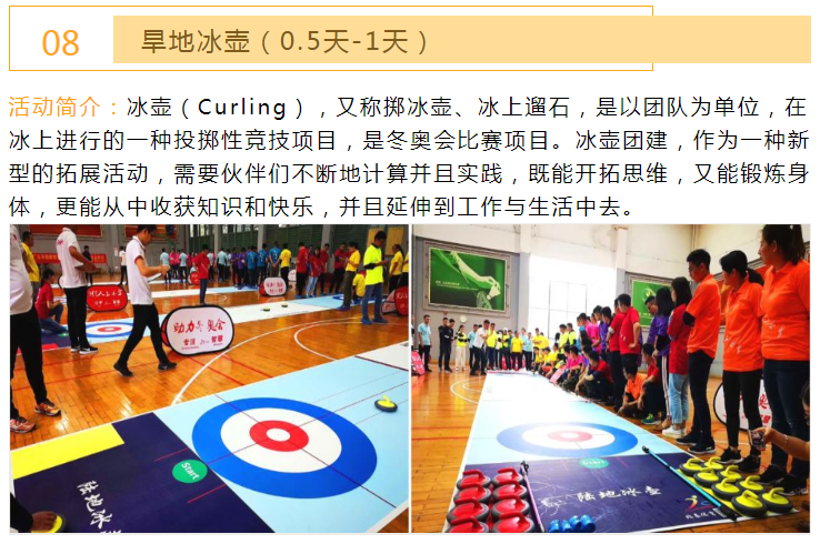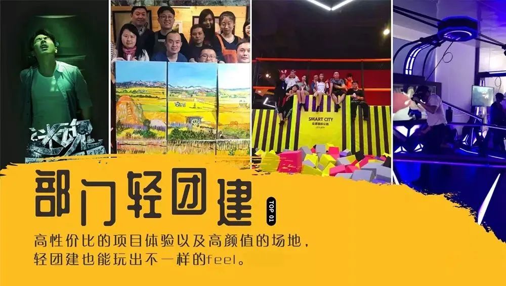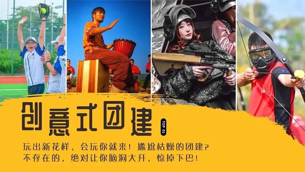 结合现在的年轻人需求是什么?多米诺骨牌、F1疯狂赛车、密室大逃脱、棒球大赛、微电影拍摄、定向活动、超级过山车、绝地求生、激情乐章、丛林历险记、攻防箭、真人CS、旱地冰壶.......超多创意活动,任你选择。