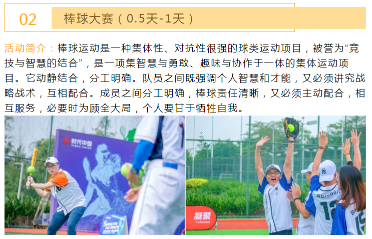 运动式团建,顾名思义就是把体育项目和企业团建项目相融合,有一定的运动量,常见的项目有激情棒球、冰壶团建、极限飞盘、腰旗橄榄球、巨人捕手、健球、攻防箭、体育的经济竞技精神嫁接到公司团队,激发企业狼性