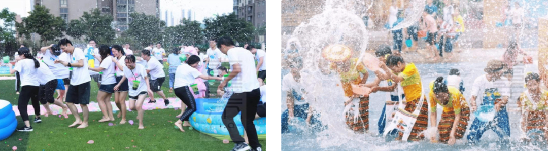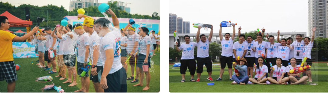 让所有人站成两排,不是将水抛给对面学员而是抛给斜对面学员,这样提升操作难度,更大的挑战等待着大家,当所有人同时将水球抛洒空中,漫天水球,会让人眼花缭乱