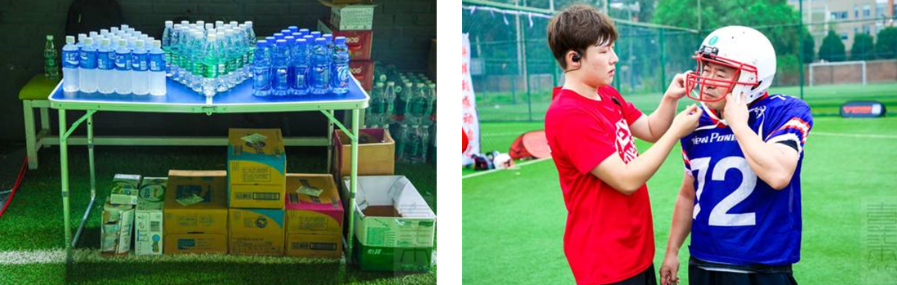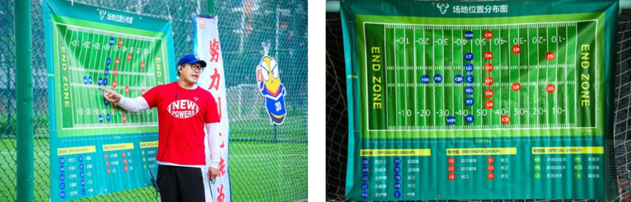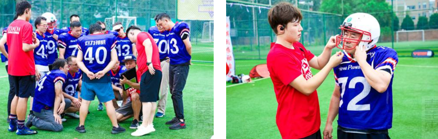美式橄榄球位置及技术初步学习,在过程中设立不同程度的挑战QB=责任、RB=坚韧、WR=专注、C=坚守 学习自我保护,对抗练习,TACKLE=勇气