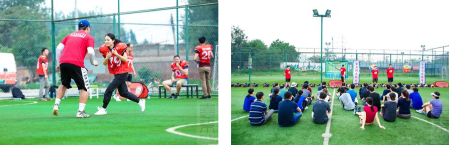 橄榄球是一个全身性的团队运动,在场上不只是一个人在运动,每个队员要设法阻止或保持住球,由此产生极其缜密的战术配合,对于企业培训可以让员工的思维、注意力、执行力、团队配合能力、团队沟通能力会比其他的运动提升更多,由于是高强度的体能运动也会激发出无限的潜能。