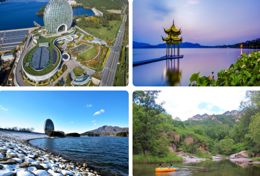 二是岸边的北京雁栖湖国际会展中心及配套的北京日出东方凯宾斯基酒店(属雁栖湖国际会都区之一),