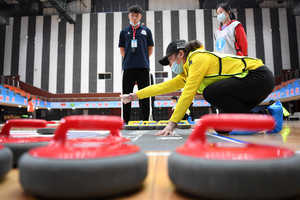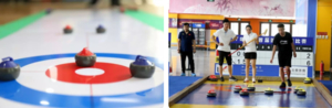 旱地冰壶(Floor Curling):是一个以团队为单位在平滑地面上进行的投掷性竞赛项目。通过让本方旱地冰壶球停在预先设定好的位置,或将对方旱地冰壶球击出,达到制胜的目的。旱地冰壶是一种通过团队协作集体力和智力于一身的比赛,是一项需要个人技术与团队战术配合的运动项目