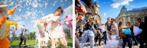 所有人在快门定格那一刻,将手上的枕头抛向天空,一定要让所有枕头飞起来哦
