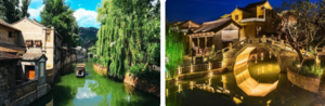 推荐经典线路】司马小烧酒坊→永顺染坊→剪纸店→皮影戏馆→日月岛广场→震远镖局→八旗会馆→鸳鸯游船码头(可顺着湖边往回走,也可乘船游览)→英华书院→年画坊→风筝文化坊→月老庙→喊泉→小吃广场→雁归游船码头。沿途有各种特色表演项目,舞龙舞狮,杂技表演,京剧表演,杨家铁板书等等,让您流连忘返。自由游览古北水镇,让您一步一景