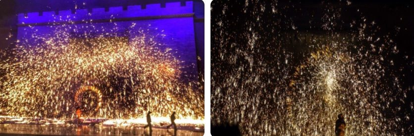 迸溅形成万朵火花,因犹如枝繁叶茂的树冠而称之为"树花",其壮观程度不亚于燃放烟花