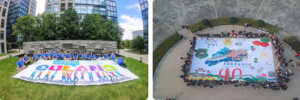 全体队员利用颜料、画笔等材料,在画布上共同绘出我们心中的愿景、企业的宏伟蓝图,全体队员以蓝图为背景进行大合影