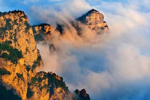 最高峰佛光顶海拔2096米,登临其顶可以远眺狼牙山和五台山。白石山景观多样,集峰林、怪石、绝壁、峡谷、瀑布、森林、云海、佛光、长城、庙观等景观于一体,地貌奇特,结构复杂,是中国古代"三十六洞天福地"之一