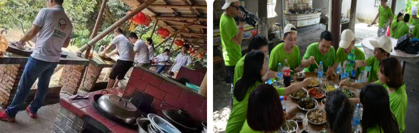 用餐:2正餐(10人/桌/12菜)+1次团建大厨房