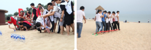 学员分成三组,分别位于珍珠岛,盲人岛和哑人岛,在各个岛屿上,通过沟通与协作,指挥其他人完成不可能完成的蒙眼夹球任务,最快完成的队伍获胜,考验层级之间,部门之间以及不同角色人员的有效沟通,领导艺术与领导力学习,突破思维定势,培养创新与风险意识