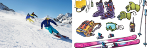 崇礼县城领取滑雪装备(雪鞋+雪具+雪仗+头盔+雪服+手套+雪镜)