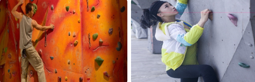 室内攀岩岩壁也分为人工岩壁和天然岩壁。人工岩壁是人为设置岩点和路线的模拟墙壁。可在室内进行攀岩技术的训练,难易程度可随意控制,训练时间比较机动,但高度和真实感有限。天然岩壁是大自然在地壳运动时自然形成的悬崖峭壁,给人的真实感和挑战性较强