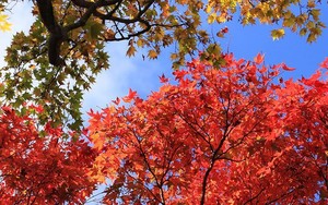 在坡峰岭长达6000米的山路上,以元宝枫、黄栌、火炬等品种组成的红叶。在黄、绿、粉黑中间杂着,色彩斑斓,美不胜收,正可谓“红叶绿中游,彩练当空舞”。