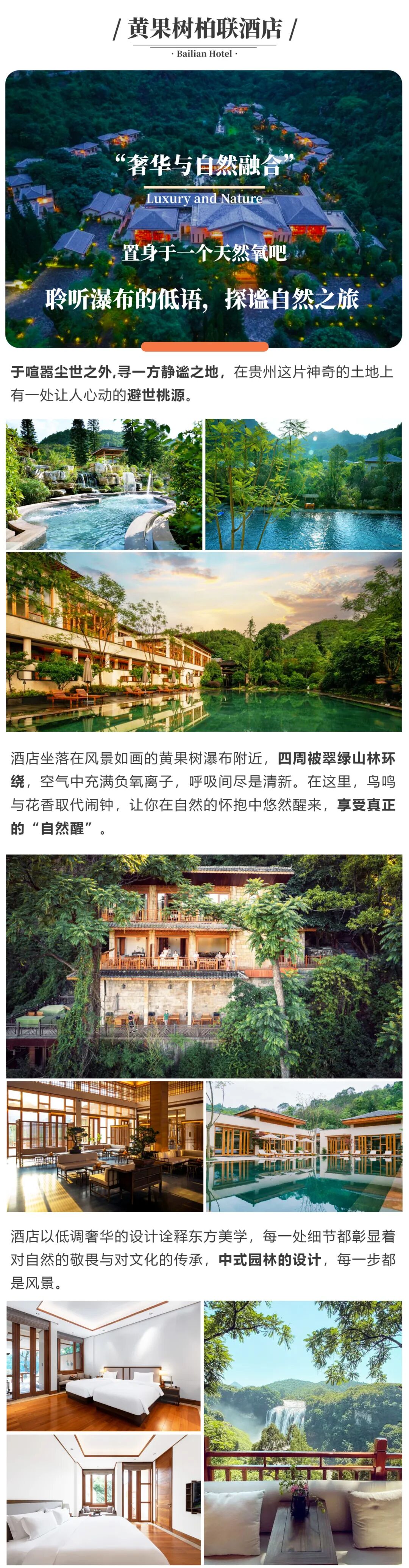 【住宿】贵阳珍铂酒店或同级2晚,中国天眼光年之外酒店或同级1晚;七封信·序言轻奢villa酒店或同级1晚;黄果树柏联酒店或同级1晚;