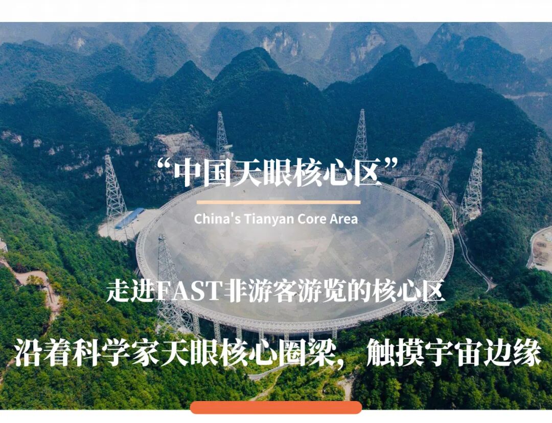 接着我们探访天眼FAST核心区,用心发现亿万年前的世界,窥探一百三十亿万光年的宇宙边缘,亲身体验天眼核心圈梁,触摸宇宙边缘。