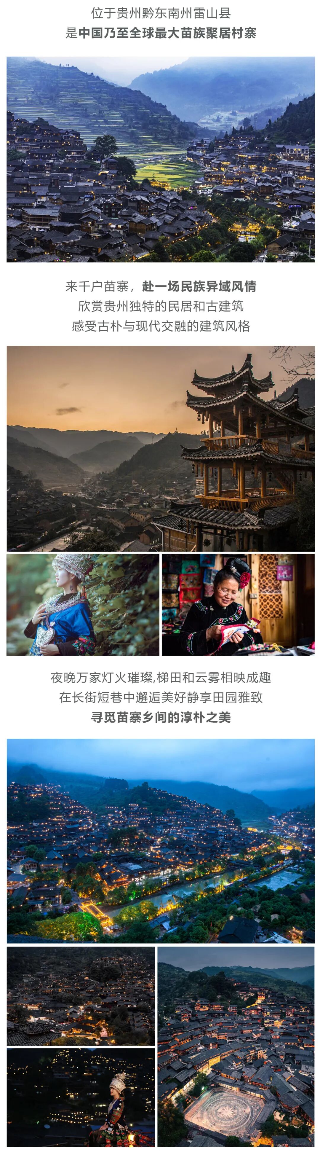 傍晚时分,大家可以上观景台拍摄西江最美全景。晚上华灯初上,像满天星星洒落在山头,好好感受这醉美西江夜色吧!