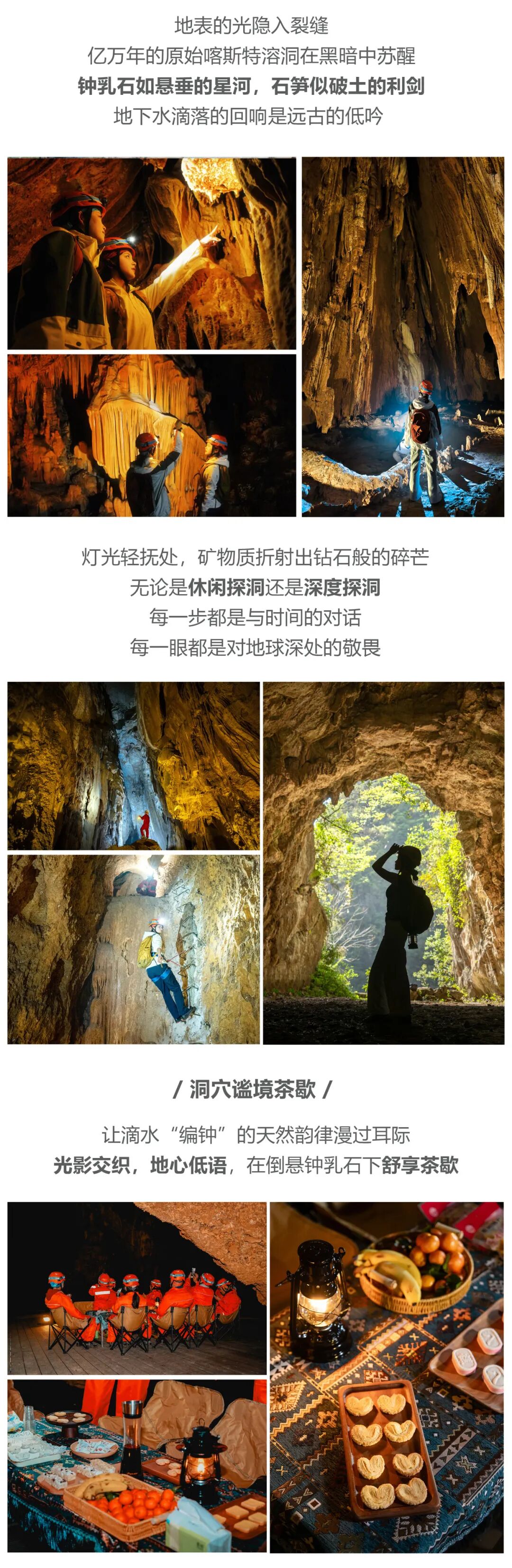 跟随领队的步伐,将这片洞天里里外外探个透彻,感受大自然的鬼斧神功,纯享大自然之间的独家溶洞下午茶。