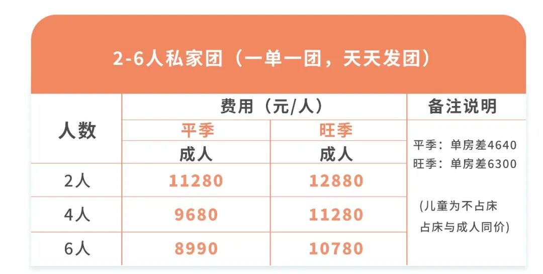 3. 单房差:单人入住须补单房差;儿童不占床含早餐;
