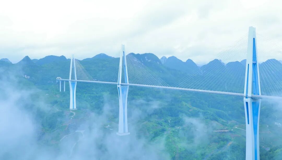 世界桥梁看中国,中国桥梁看贵州“2009年建成通车,位于贵州省安顺市关岭县,建成时是“世界首座大跨径钢桁梁悬索桥。”