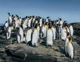 南极半岛海岛上的小企鹅,包括金图企鹅、阿德利企鹅和帽带企鹅,体长几十厘米,体重在20斤以下。与帝企鹅、王企鹅同样优雅、华贵,不惧怕人类。在10~11月,这3种小企鹅正在上演挚窝、求爱、交配、产卵和孵卵繁殖环节。