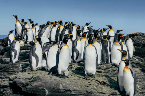 南乔治亚岛是“南极野生动物王国”,王企鹅、金图企鹅、海豹、信天翁、蓝眼鸬鹚、雪燕数量惊人,漫山遍野的大型王企鹅群令人叹为观止。10月下-11月上、中旬,皑皑白雪把南乔治亚岛衬托得美不胜收。