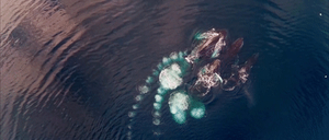 成群结队的鲸鱼在海里巡游……