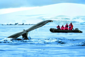 登陆冰川徒步探险,零距离观察极地动物。