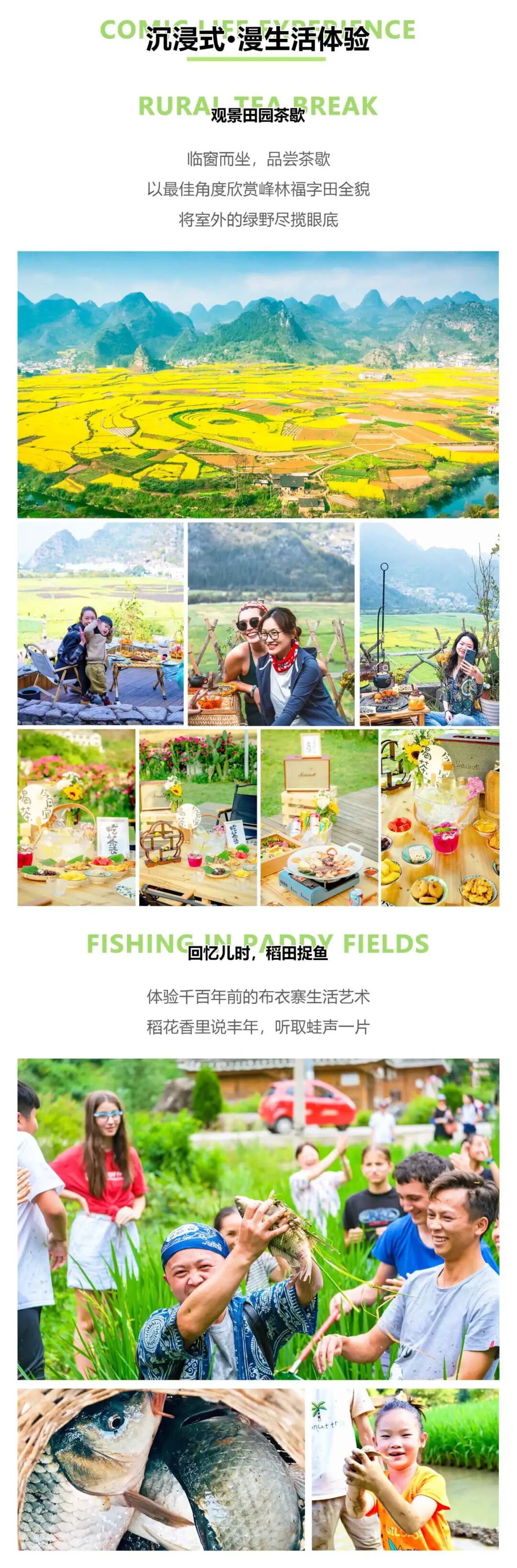 【下午】打卡布依农家香甜的美食【手打糍粑】。之后来到【八卦田】放慢生活的节奏,尽情享受【稻田抓鱼】的当地农耕文化,最后去到万峰林最独家的观景点,慢享【田园茶歇】静赏【峰林福字田】