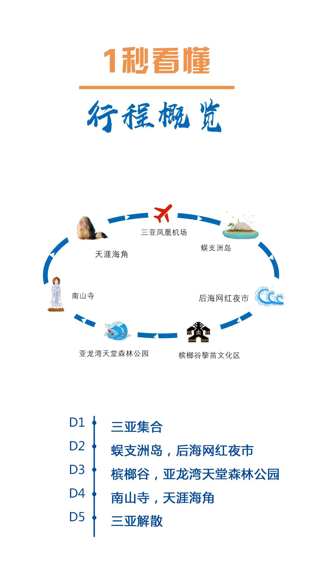 3:南山寺大门票,天涯海角大门票+观光车票,蜈支洲岛大门票+往返船票,槟榔谷大门票+观光车票,天堂森林公园大门票+观光车票
