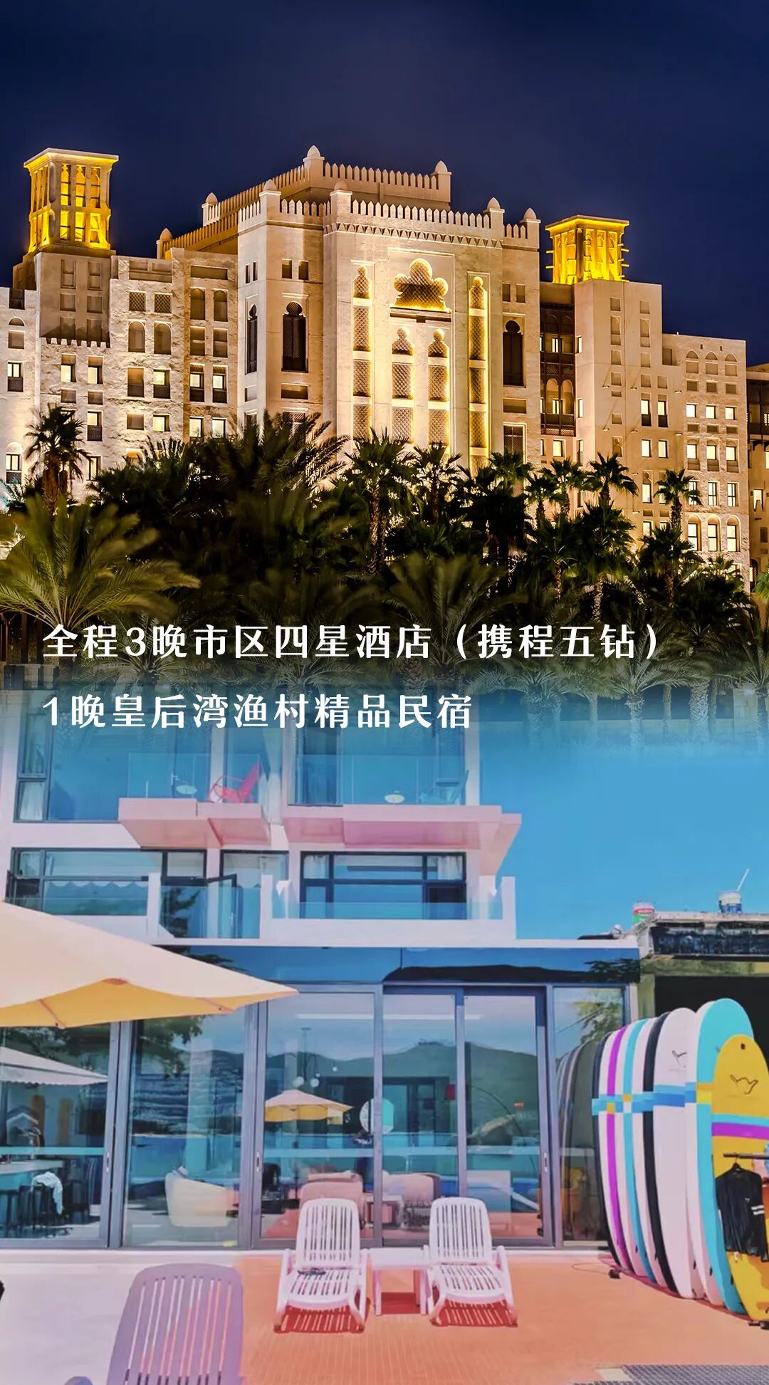 住宿:网红后海一线海边民宿(逃缘客栈或免费升级1晚海棠湾携程5钻住宿,备选酒店:三亚海棠湾麓湖度假酒店或同级)
