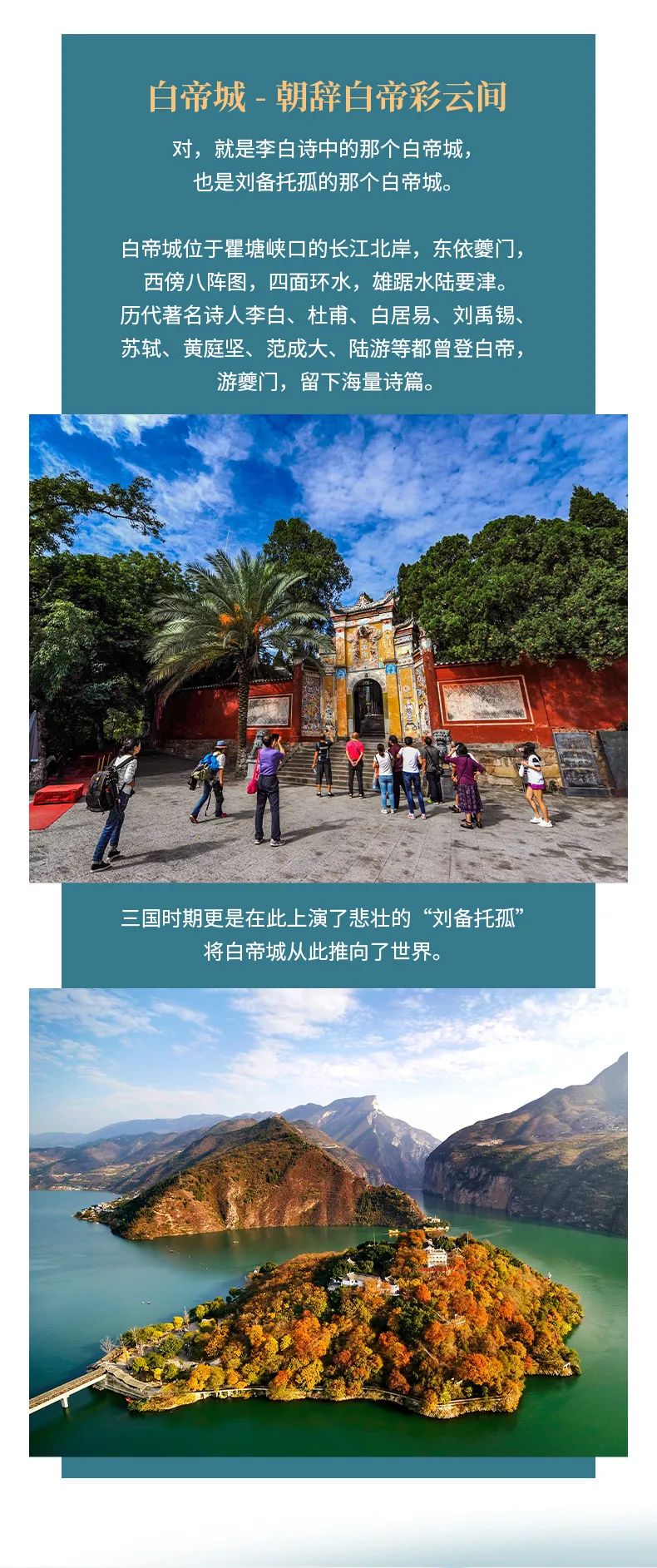 历代有名诗人李白、杜甫、白居易、刘禹锡、苏轼、黄庭坚、范成大、陆游等都曾登白帝,游夔门,留下大量诗篇。