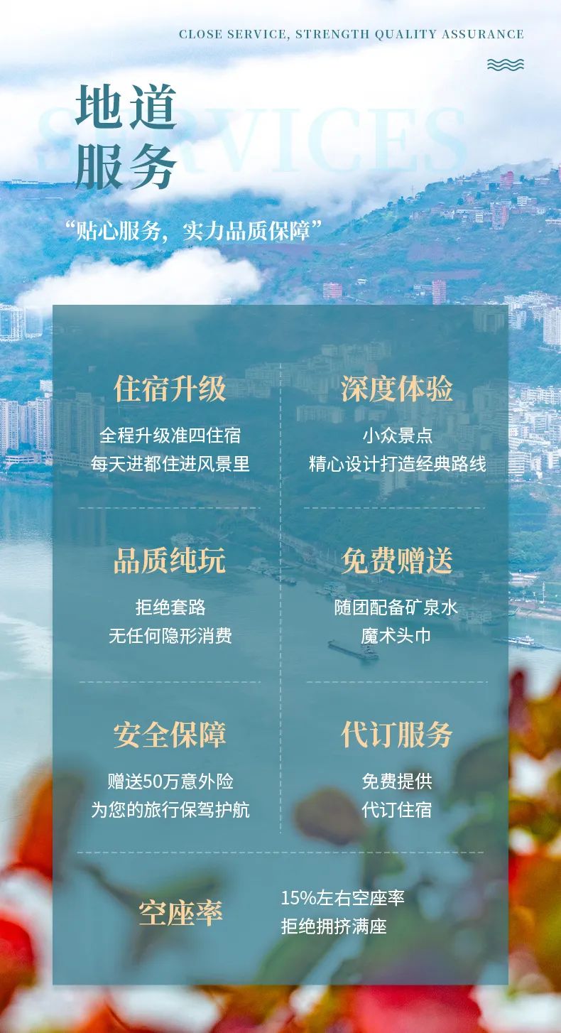 3、住宿:全程含4晚住宿,宜昌四星级酒店2晚,巫山准四星级舒适酒店2晚;