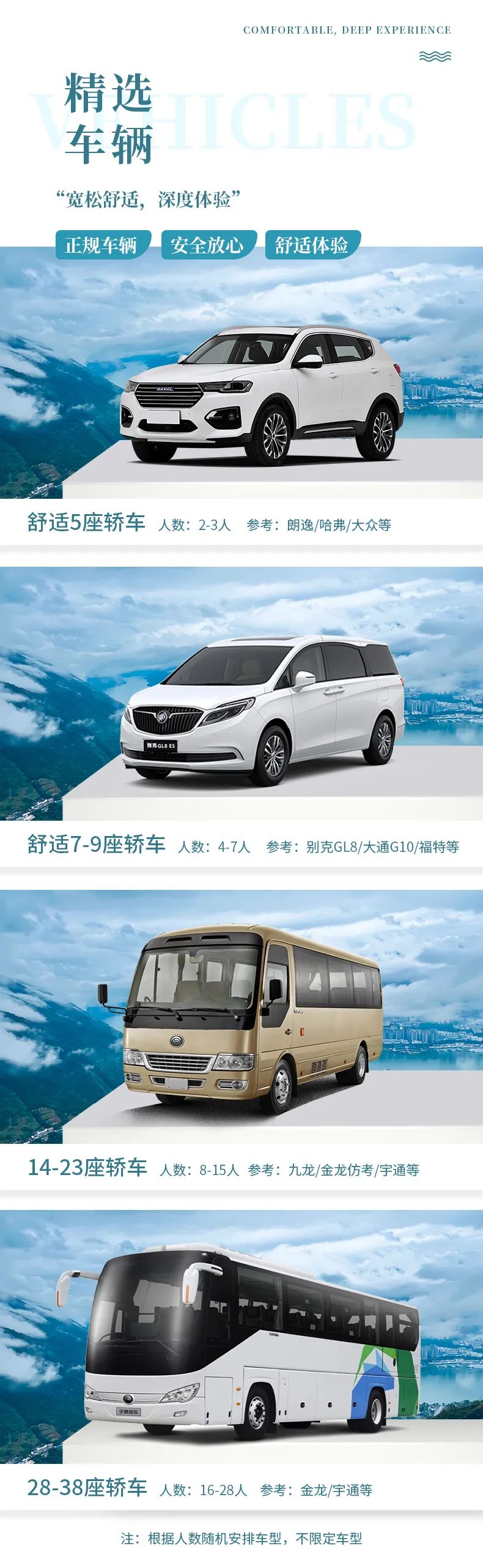 交通:旅游中巴车;