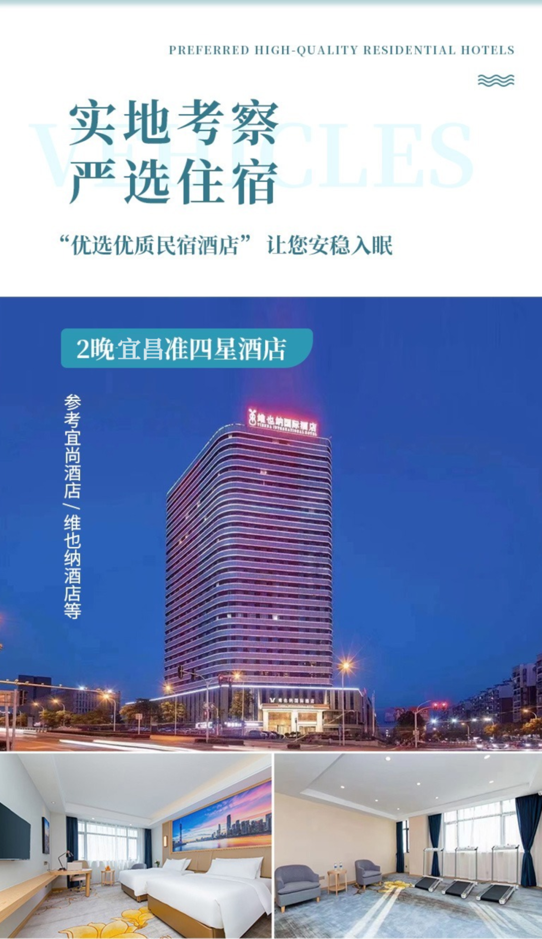 住宿:宜昌市区准四酒店,参考宜尚酒店、维也纳酒店等;