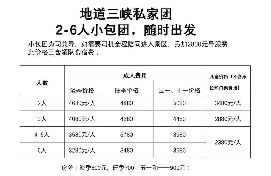 (淡季:2480元/人,儿童1480元/人,房差500)