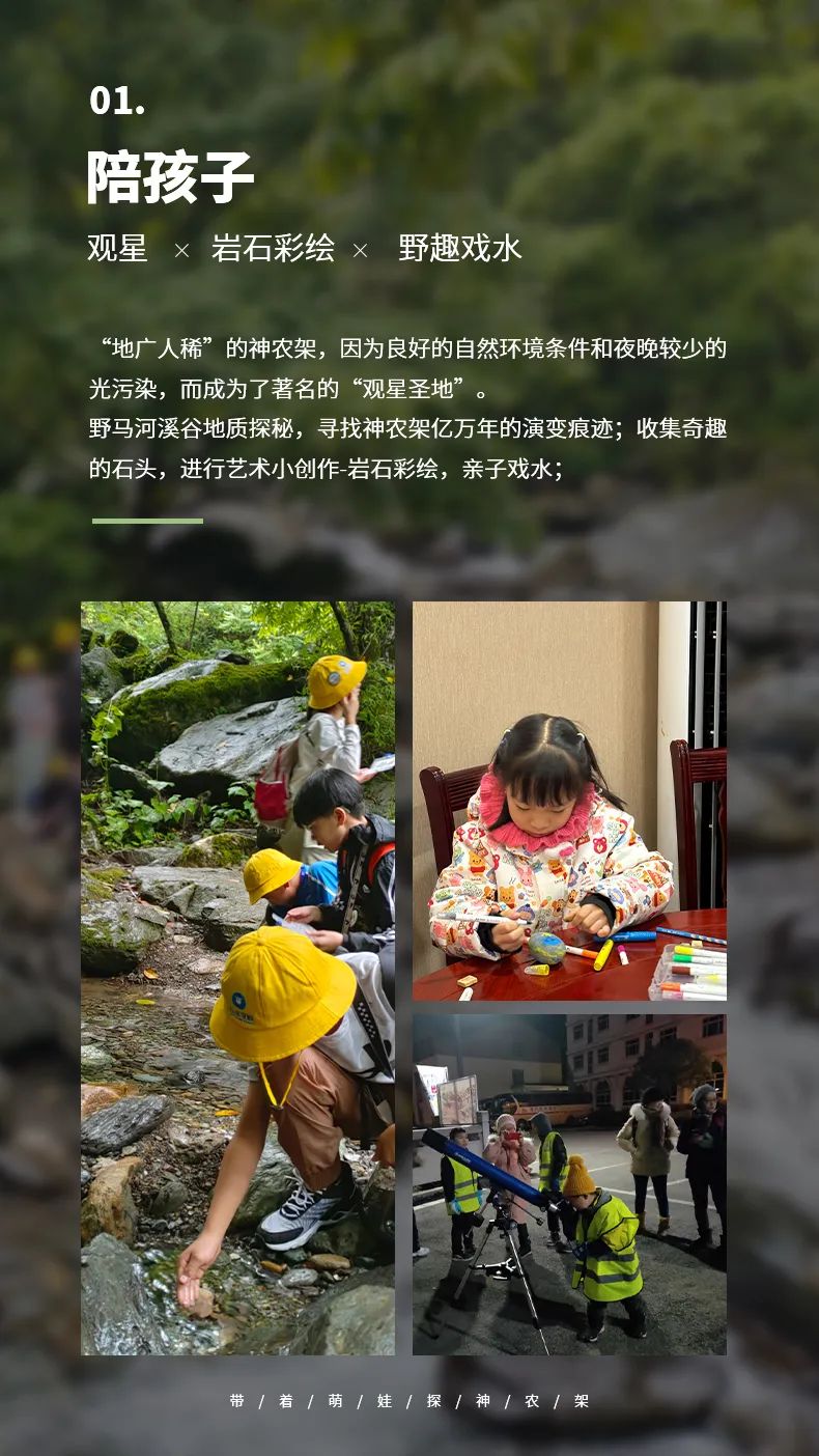 下午:野马河溪谷地质探秘,寻找神农架亿万年的演变痕迹;收集奇趣的石头,进行艺术小创作-岩石彩绘;
