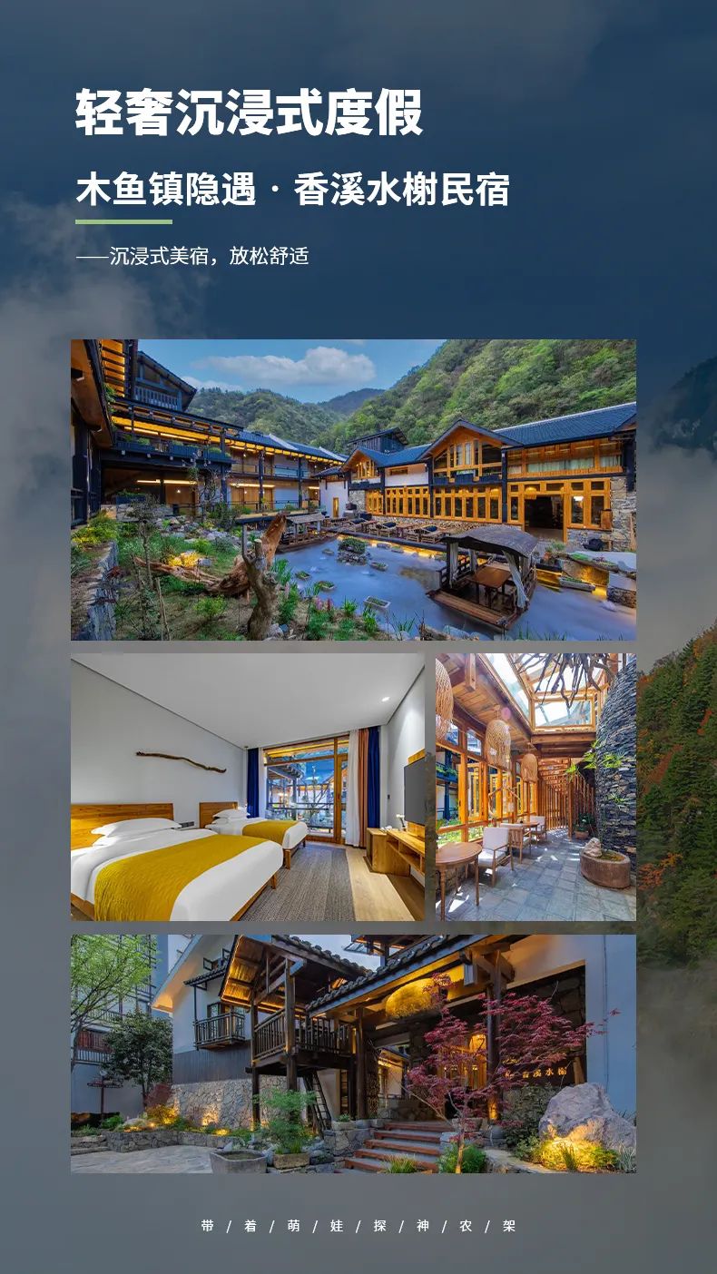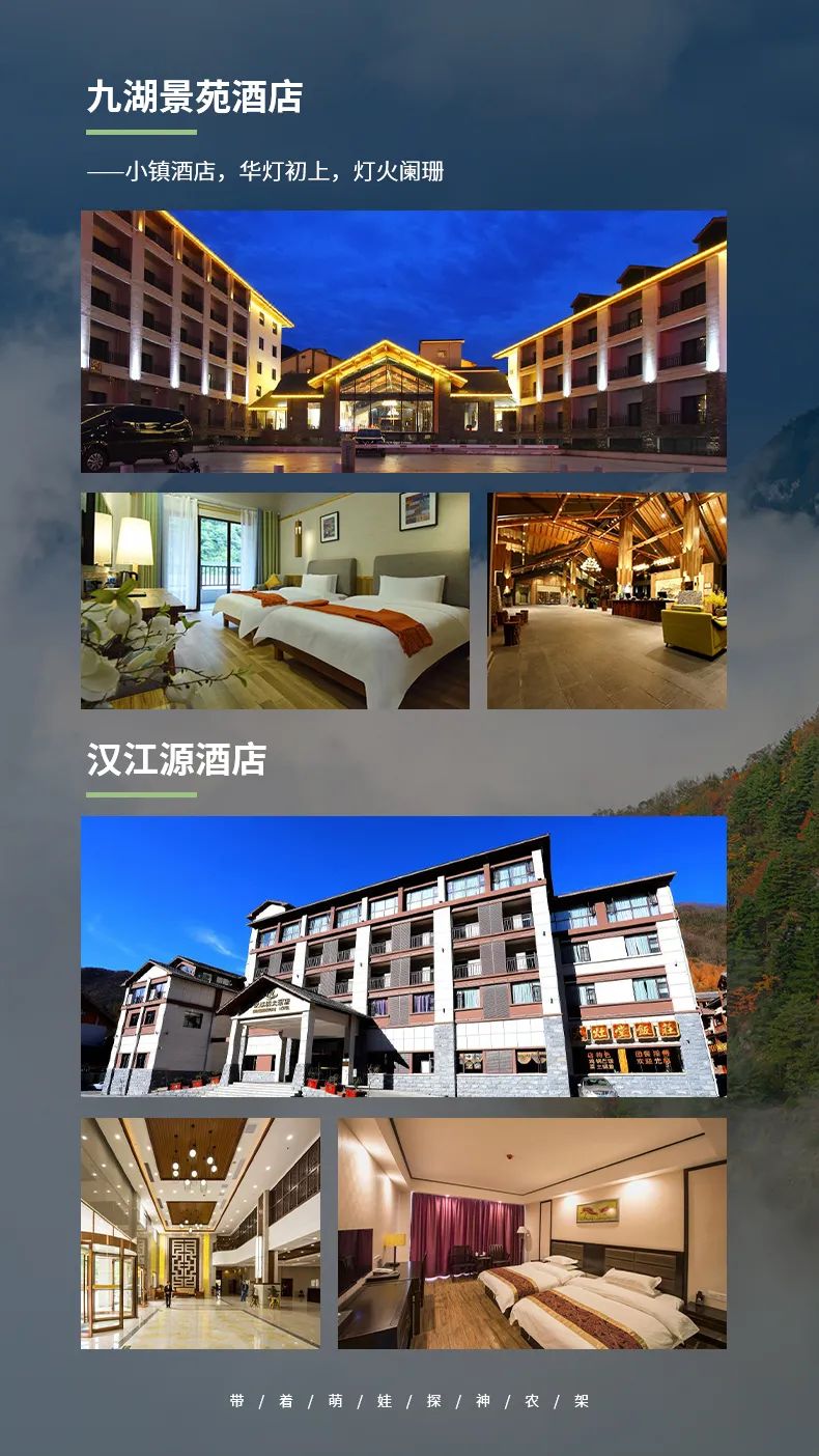 住宿:入住神农架坪阡古镇,参考神农架汉江源酒店、九湖景苑酒店等;
