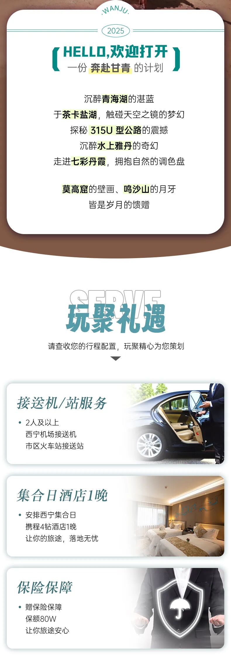 玩聚甘青 | 青海湖黑马河景区.茶卡盐湖.察尔汗盐湖.大柴旦翡翠湖.水上雅丹.315U型公路.莫高窟.鸣沙山月牙泉.远观嘉峪关.七彩丹霞.祁连大草原.岗什卡雪峰 2-8人小团8日