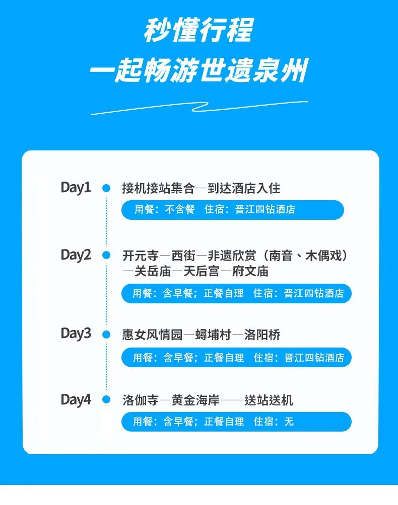 【集合地点】泉州指定酒店全天集合,出发前三天短信通知集合酒店